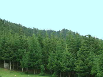 待甫僧生态园属休憩场所,园区位于森林、草场交接地带,南部是郁郁苍苍的林带,林带下部是人工次生林,颜色比自然林浅。人工林带像绿色的卫士,整齐划一地站立在自然林带下部,守卫着绿色生态园。北部是高山草甸型草场,茫无涯际,构筑了一幅静谧、深沉、清新、滋润的山野景象,让人流连忘返,是一个天然的疗养院。这里独特的绿色不仅使人赏心悦目,而且对人的神经系统、视网膜组织具有独到的调节作用,还可以减少对人体有害的紫外线的侵蚀,消除杂乱纷繁的色彩对眼睛的刺激,维持血压正常,减缓心跳频率,消除疲劳,使人目清眼亮,胸怀坦荡,真正达到生态回归的目的。
