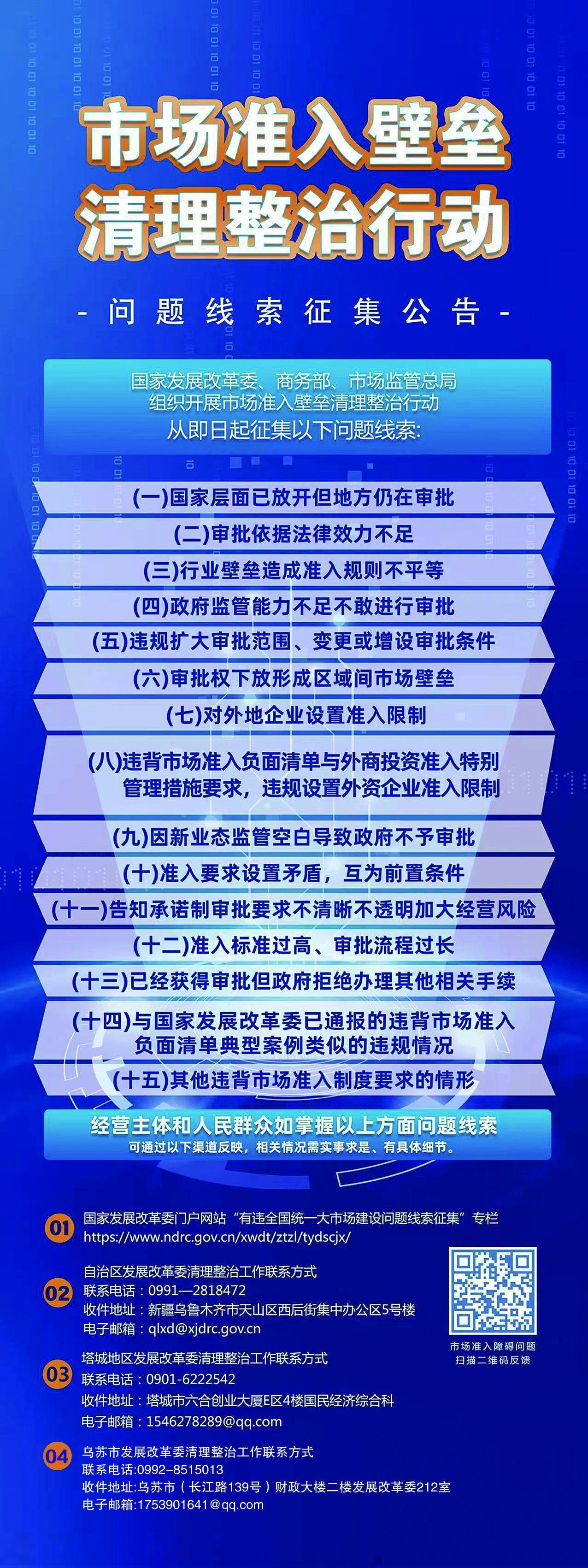 乌苏市发展改革委关于开展市场准入壁垒清理整治行动问题线索征集公告
