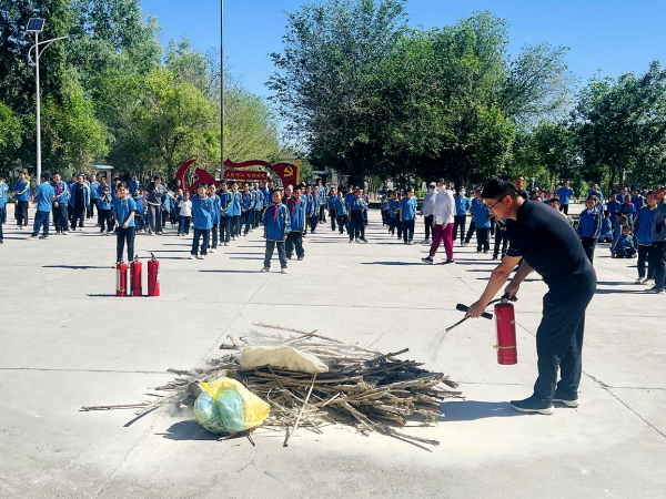 学校还邀请车排子镇政府消防队工作人员对自护、自救的逃生方法、灭火器使用等内容进行现场教学。