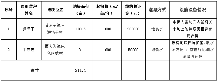 二、租赁费交纳标准及租赁期限:2025年租赁费以本次中标价标准付清当年租赁费,支付时间按照土地发包方与中标人双方签订的《国有土地租赁合同书》约定为准,租赁期限为2025年3月—2025年11月。