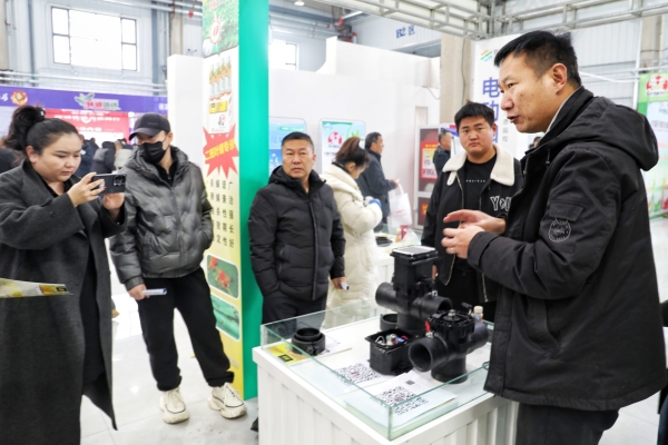 石桥乡铁架子村牧民新村党支部书记李江海说:“这次农资展销会,我对高新节水设施自动球阀比较感兴趣。我们村有80000亩土地,去年我们就安装了2000亩地自动球阀,今年争取再上5000到10000亩地这种高新节水设施。这种高新节水设施自动滴水省工省力,节本增效,肥料搅拌比较匀,好处很多。”