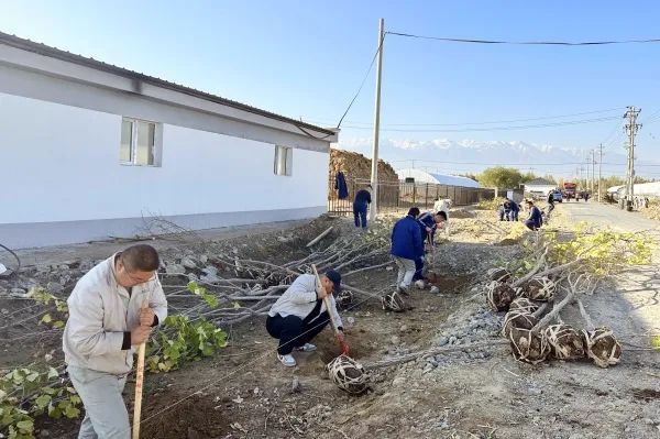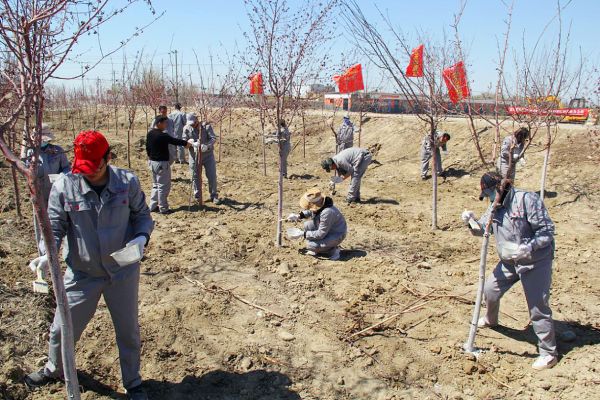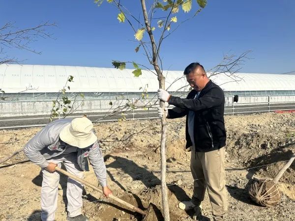 乌苏市兴源水务有限公司四棵树河灌区党支部、奎屯河党支部组织党员、入党积极分子和职工开展2023年秋季植树造林活动,以实际行动为美丽乌苏挥锹添绿。