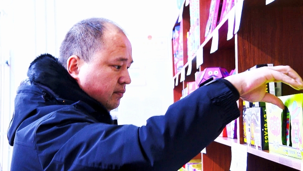 乌苏市某烟花爆竹销售店负责人宋国停说:“春节将至,进入烟花爆竹销售旺季,我们严格实行实名制登记,不给未成年人销售烟花爆竹。我们抓好安全生产工作,安全燃放烟花爆竹营造良好的节日氛围。”