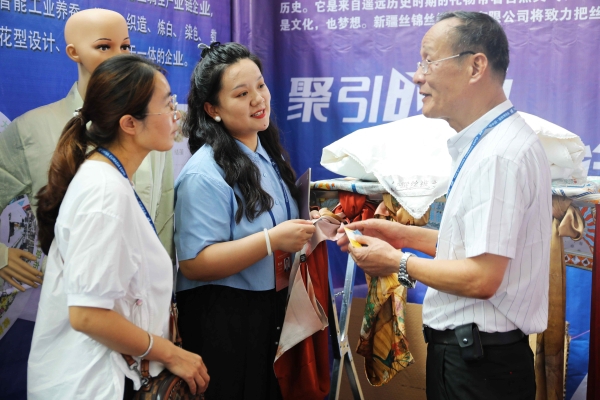 新疆丝锦丝绸纺织有限公司技术总监杨杭杰说:“企业是第一次参展亚欧博览会,主要展出蚕茧、丝绸、丝巾、蚕丝被等产品,希望让更多的人知道乌苏有丝绸产品,并借助这个平台走向国际市场。”