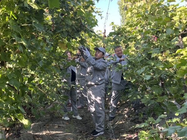 在八十四户乡园艺场,乌苏市兴源水务有限公司机关支部组织党员开展了“党建引领 爱心助农”主题党日活动,党员们志愿者们来到职工徐淑良家的葡萄种植基地,三两一组有序采摘、装运、分拣、装箱,忙得不亦乐乎,并通过网络为果农进行宣传,进一步拓宽葡萄销路。