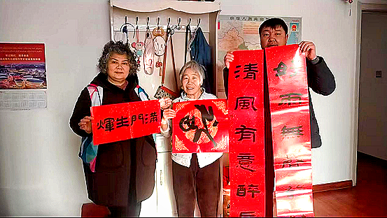 居民刘玉花说:“感谢党和政府无微不至的关怀,快到春节了,社区干部上门给我们送春联贴‘福’字,想得太周到了,让我们感觉很温暖。”