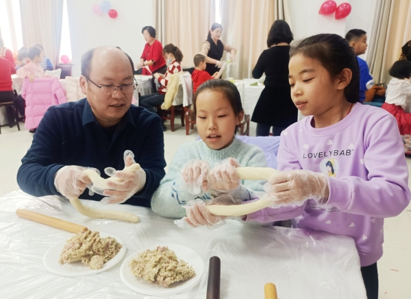 新市区街道文德路社区小朋友黄晁睿轩说:“快过年了,我们一起包饺子,我们的春节也有了‘家’的味道。”