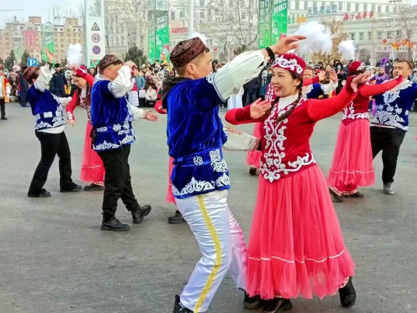 现场除了传统民俗展演,还有非物质文化遗产、广场舞、扇子舞、麦西来甫等特色舞蹈表演,大家身着各民族传统服饰劲舞欢歌,展现了各族群众团结奋斗、和谐共处的盛况。