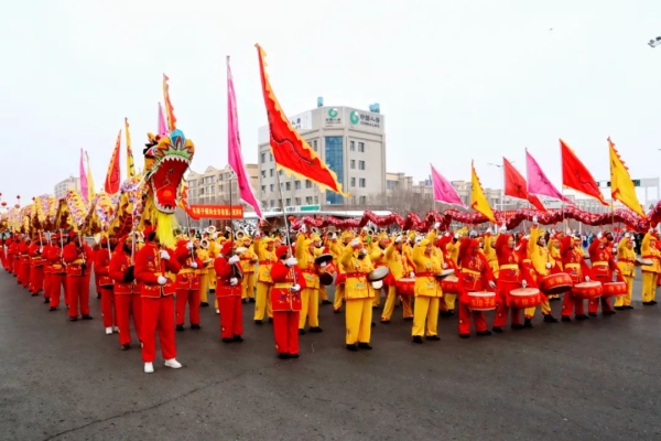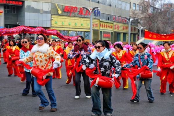 在老城区正和商城展演现场,来自四棵树镇、哈图布呼镇、南苑街道、西城区街道等8个社火方队有序出场,敲锣鼓、扭秧歌、舞龙、小曲表演等各具特色的传统民俗节目轮番上演,以群众喜闻乐见的形式为现场观众呈现了一道丰盛的年味文化大餐。