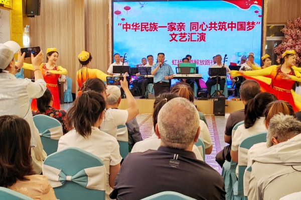 5月19日,虹桥街道解放路社区党支部举办了“中华民族一家亲 同心共筑中国梦”文艺汇演活动,社区全体干部与辖区共驻共建单位、辖区居民欢聚一堂,由党员干部群众自编自演的舞蹈、歌曲、快板等精彩节目接连上演,一个个具有民族特色的演出吸引了众多群众围观,大家纷纷举起手机记录抓拍精彩的瞬间。