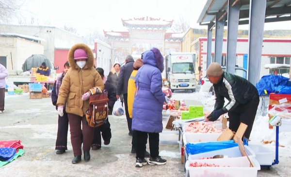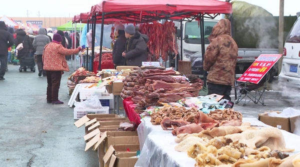 甘河子镇大树庄子村村民郭绣花说:“这儿的集市很热闹,货也齐全,想买的都能买到。快过年了,我正好来备点年货,刚刚买了些松花蛋和皮蛋。”