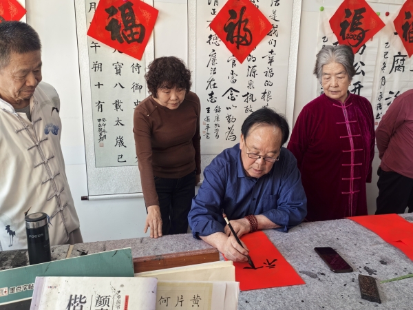 2月3日,新市区街道文德路社区离退休党支部开展了“银龄挥毫颂新春、红联送福暖社区”写春联送祝福活动,为离退休老干部等写春联、送祝福,让困难群众、离退休干部、干部职工共同感受组织的温暖和越来越浓的年味儿!
