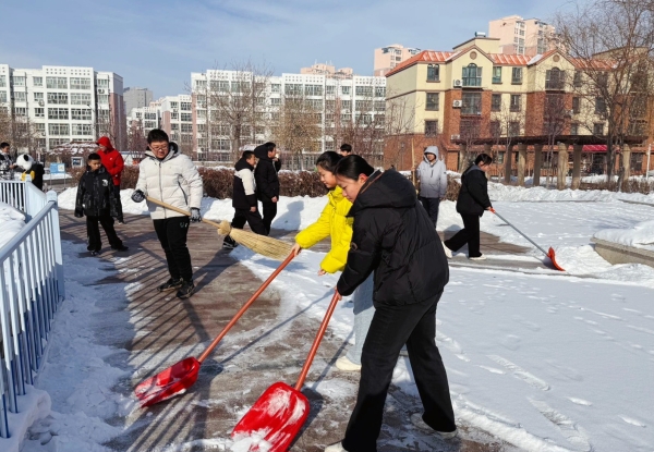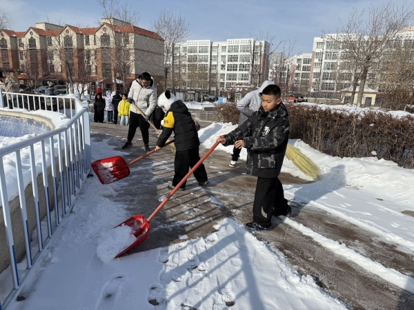 活动现场,学生们手持扫帚、铲雪锹等工具,分工协作,干劲十足。返乡大学生发挥主力军作用,带头清理卫生死角;小初高学生们也不甘示弱,认真清扫路面残雪和垃圾。大家不畏严寒、齐心协力,用实际行动为社区环境贡献力量。