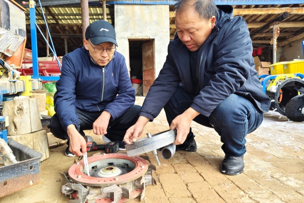 “播种机是春播的好帮手,提前把它检修好,播种的时候才能又快又好,保障今年的播种质量和进度,为丰收打下基础。”西大沟镇下店村村民李金生说。