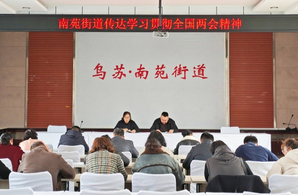 3月17日,乌苏市南苑街道组织全体干部深入学习贯彻全国两会精神,切实把学习成果转化为服务群众、为民办实事的实际成效。