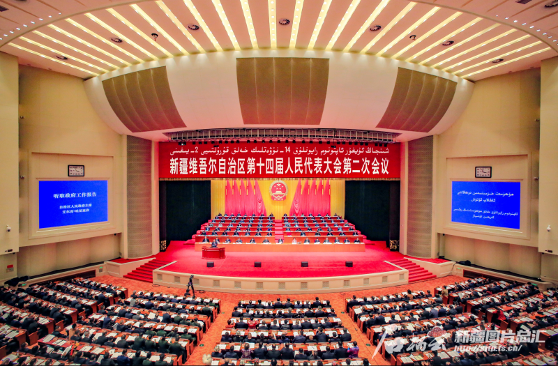 1月30日,新疆维吾尔自治区第十四届人民代表大会第二次会议在新疆人民会堂开幕。图为会议现场。 石榴云/新疆日报记者 蔡增乐摄