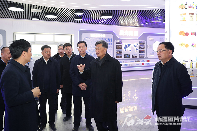 2月23日,自治区党委书记马兴瑞在晨光生物科技集团焉耆有限公司了解企业生产、产业发展情况。石榴云/新疆日报记者 崔志坚摄