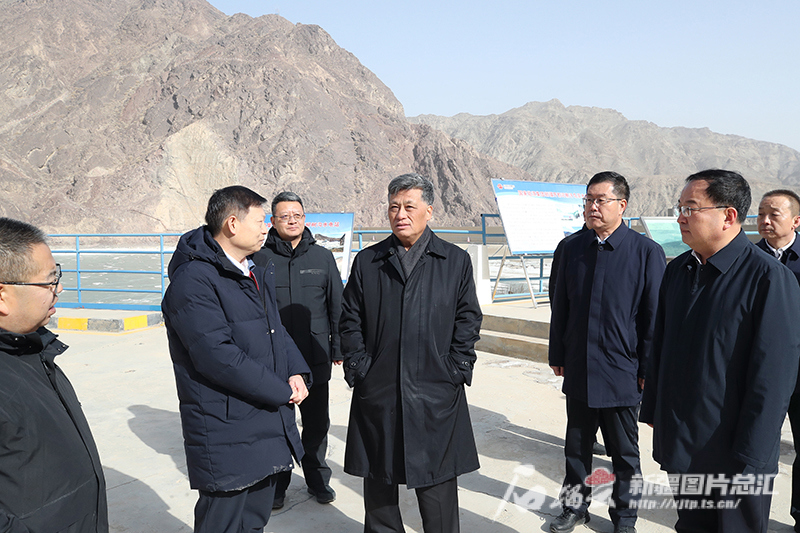 2月23日,自治区党委书记马兴瑞在开都河流域察汗乌苏水电站坝址实地察看国能集团抽水蓄能项目及清洁能源基地建设进展。石榴云/新疆日报记者 崔志坚摄