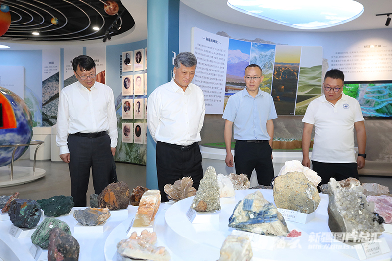 6月6日,自治区党委书记马兴瑞来到中国地质调查局乌鲁木齐自然资源综合调查中心,走进新疆地质文化馆详细了解新疆地质调查开展情况和工作成果。石榴云/新疆日报记者 崔志坚摄