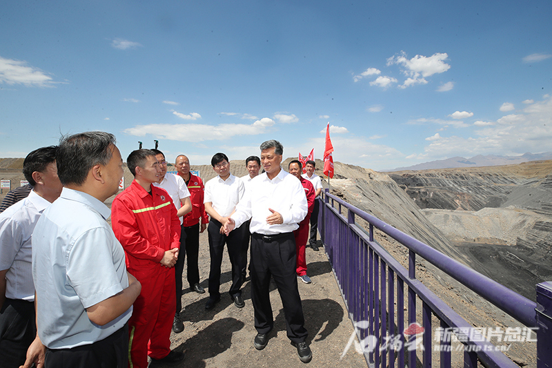6月19日,自治区党委书记马兴瑞在吐鲁番恰特喀勒煤田火区治理现场,向相关管理部门和治理企业负责人详细询问各项工作进展。石榴云/新疆日报记者 崔志坚摄