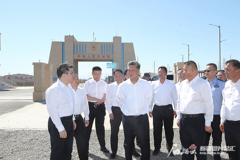 7月20日,自治区党委书记马兴瑞在博尔塔拉蒙古自治州调研。这是马兴瑞来到阿拉山口国门,听取口岸运行和对外贸易进展介绍,实地察看口岸公路升级改造情况。石榴云/新疆日报记者 崔志坚摄