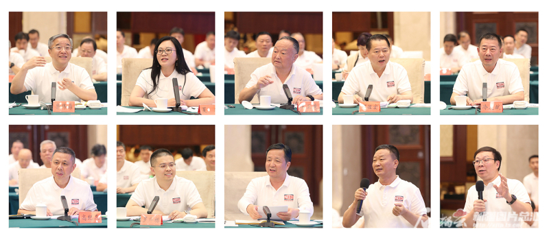 会上,万向集团董事长鲁伟鼎、依文集团董事长夏华、山东五征集团董事长姜卫东、月星集团董事局主席丁佐宏、黑龙江飞鹤乳业董事长冷友斌、天合光能董事长高纪凡、合盛硅业总经理罗烨栋、特变电工董事长张新、海天集团董事长费功全、优刻得董事长季昕华10位民营企业家代表先后发言(由左至右、由上至下)。石榴云/新疆日报记者 崔志坚摄