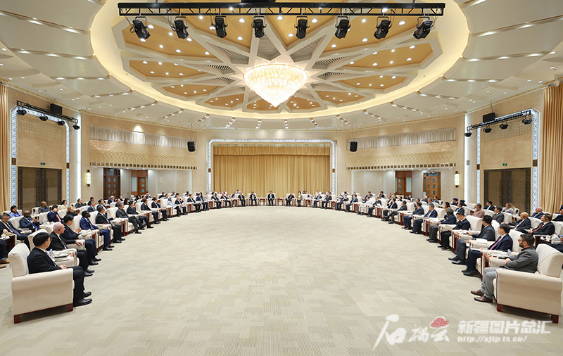 12月15日,自治区党委书记马兴瑞、自治区主席艾尔肯·吐尼亚孜在乌鲁木齐会见前来出席新疆的就业和社会保障国际研讨会的中外嘉宾。石榴云/新疆日报记者 崔志坚摄
