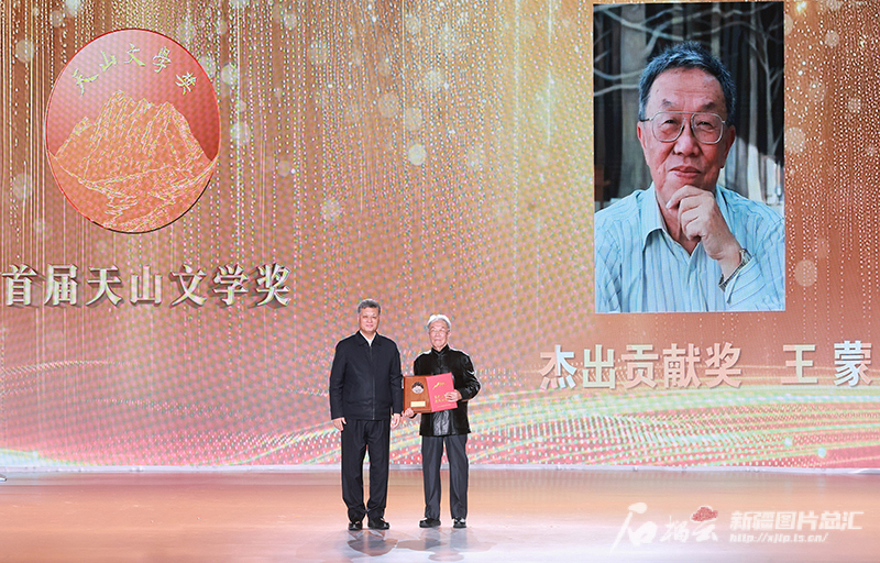 首届天山文学奖颁奖典礼举行 马兴瑞为杰出贡献奖获得者王蒙颁奖