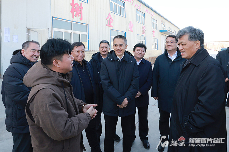 1月11日,自治区党委书记马兴瑞在位于英吉沙县的喀什蓝遍天智能织造有限公司,详细了解企业生产经营、带动群众就业增收情况。石榴云/新疆日报记者 崔志坚摄