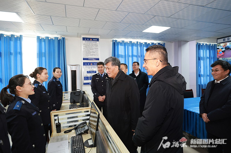 1月11日,自治区党委书记马兴瑞在喀什地区英吉沙县公安局城镇派出所,考察基层社会治理特别是风险防范化解工作。石榴云/新疆日报记者 崔志坚摄