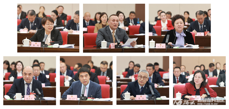 联组会上,自治区政协委员张锐、艾沙江·阿布拉、刘武军、赵志刚、苏里坦·达尼尔汗、马凯、伊元荣先后发言。石榴云/新疆日报记者 崔志坚摄