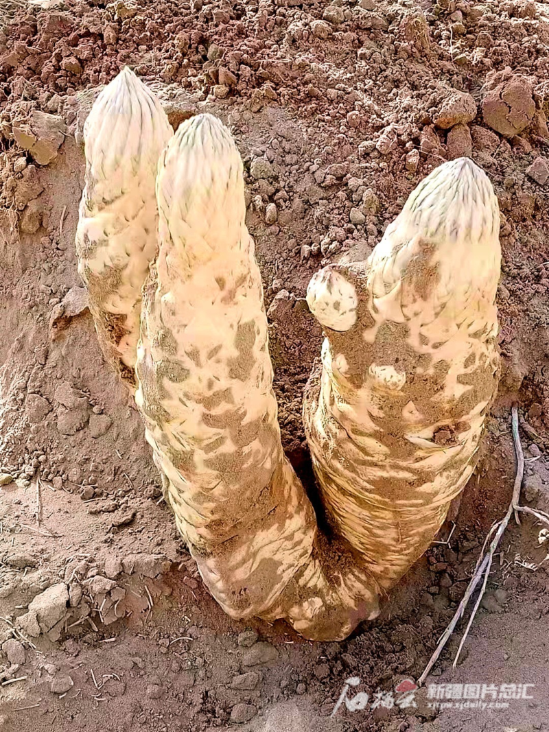 新疆是我国肉苁蓉主产区之一,近年来,新疆利用丰富的沙漠资源,积极发展肉苁蓉产业,肉苁蓉接种面积已达100余万亩。各地在发展肉苁蓉产业时,把沙漠治理与经济发展结合起来,实现了生态效益和经济效益的“双赢”。