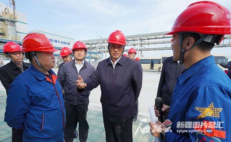 10月15日,自治区党委书记马兴瑞在伊吾县新疆广汇碳科技综合利用有限公司,了解二氧化碳捕集利用与封存技术(CCUS)项目。普拉提·尼亚孜摄