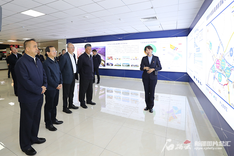 10月20日,尹力、马兴瑞、殷勇、艾尔肯·吐尼亚孜等在乌鲁木齐国际陆港区考察“一带一路”核心区建设工作。石榴云/新疆日报记者 崔志坚摄