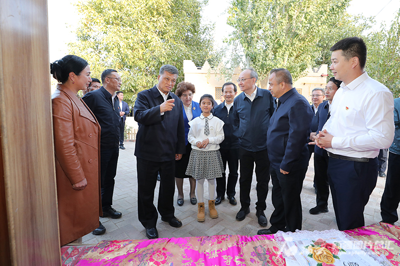 10月19日,尹力、马兴瑞、殷勇、艾尔肯·吐尼亚孜等在和田县罕艾日克镇稻香村看望基层群众。石榴云/新疆日报记者 崔志坚摄