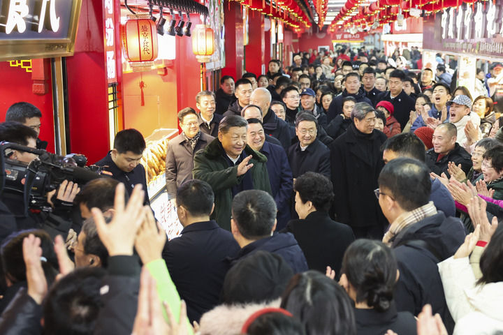 沈阳大东副食品商场历史悠久,富有特色的年节商品琳琅满目。23日上午,习近平来到这里,察看多家店铺,频频同店主和顾客交流,详细了解节日期间市场供应情况。大家见到总书记都十分激动,连声欢呼“总书记好”!习近平对大家说,“菜篮子”“米袋子”“果盘子”是民生大事,现在物质丰裕,过年团圆更要让大家吃得好、吃得健康。