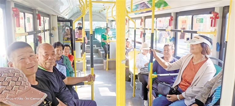 □8月24日,九间楼乡的村民乘公交车到市区。 本报记者张国辉摄