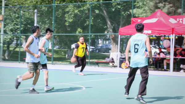 篮球赛采用四节制的分段赛制,球员们流畅的突破、传球、跳投配合,充分展示了精湛的篮球技艺和顽强的拼搏精神。