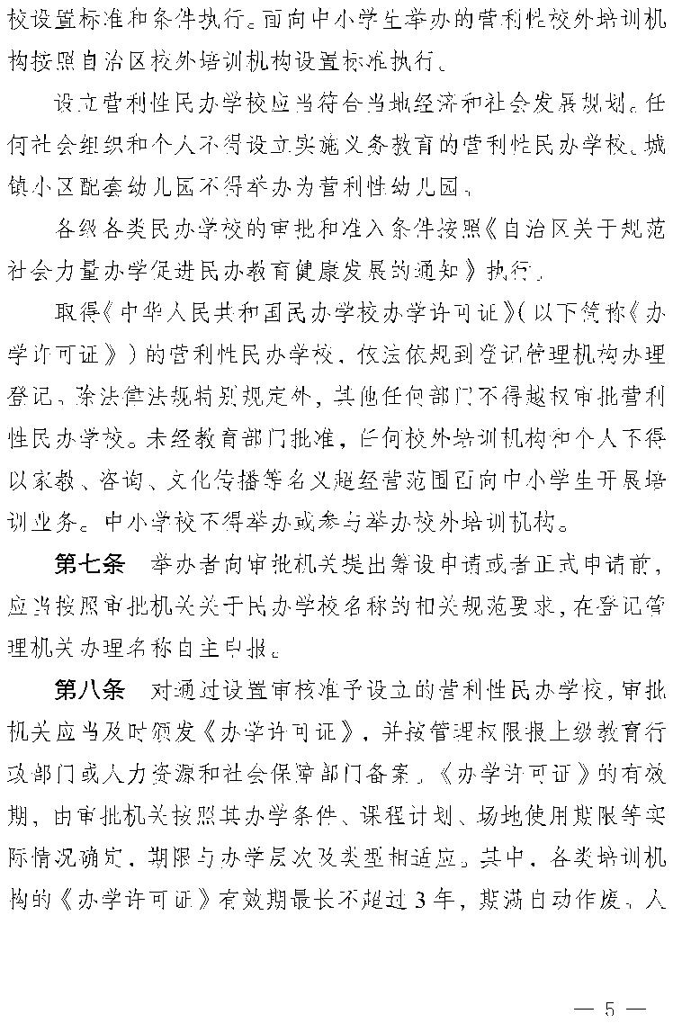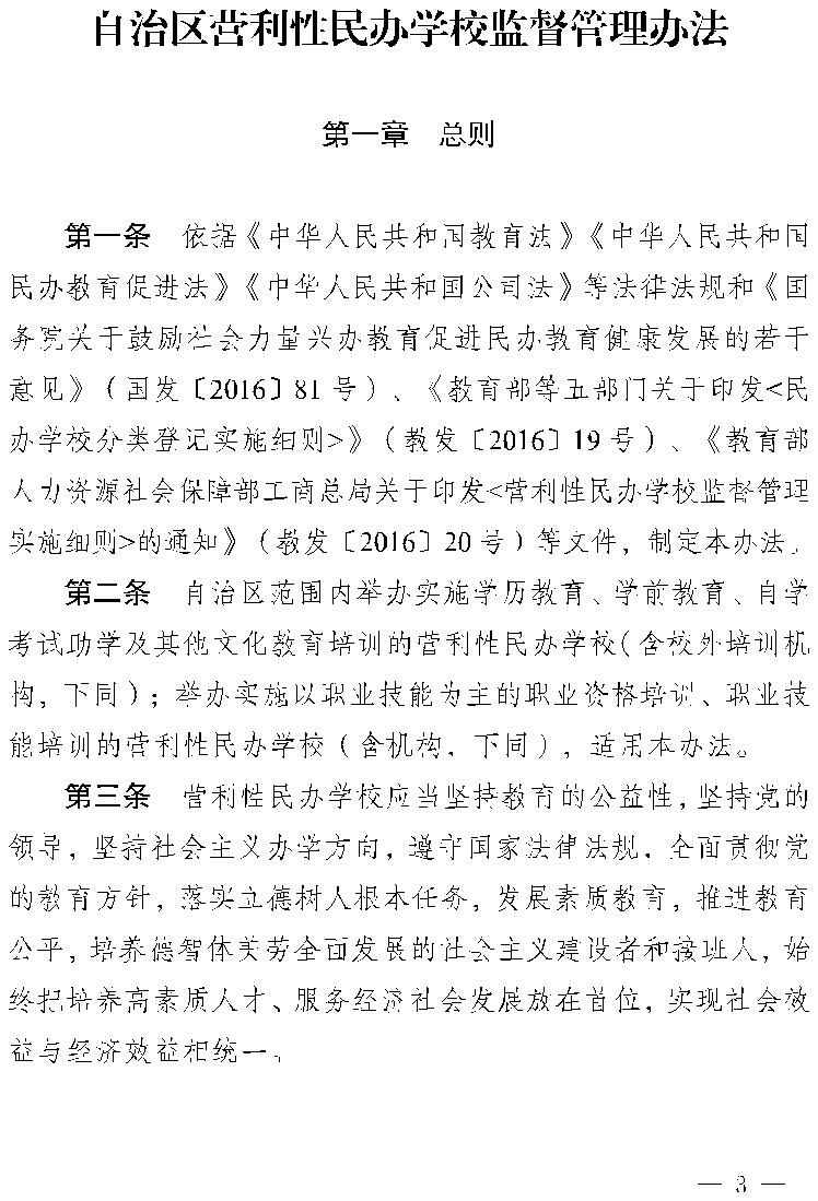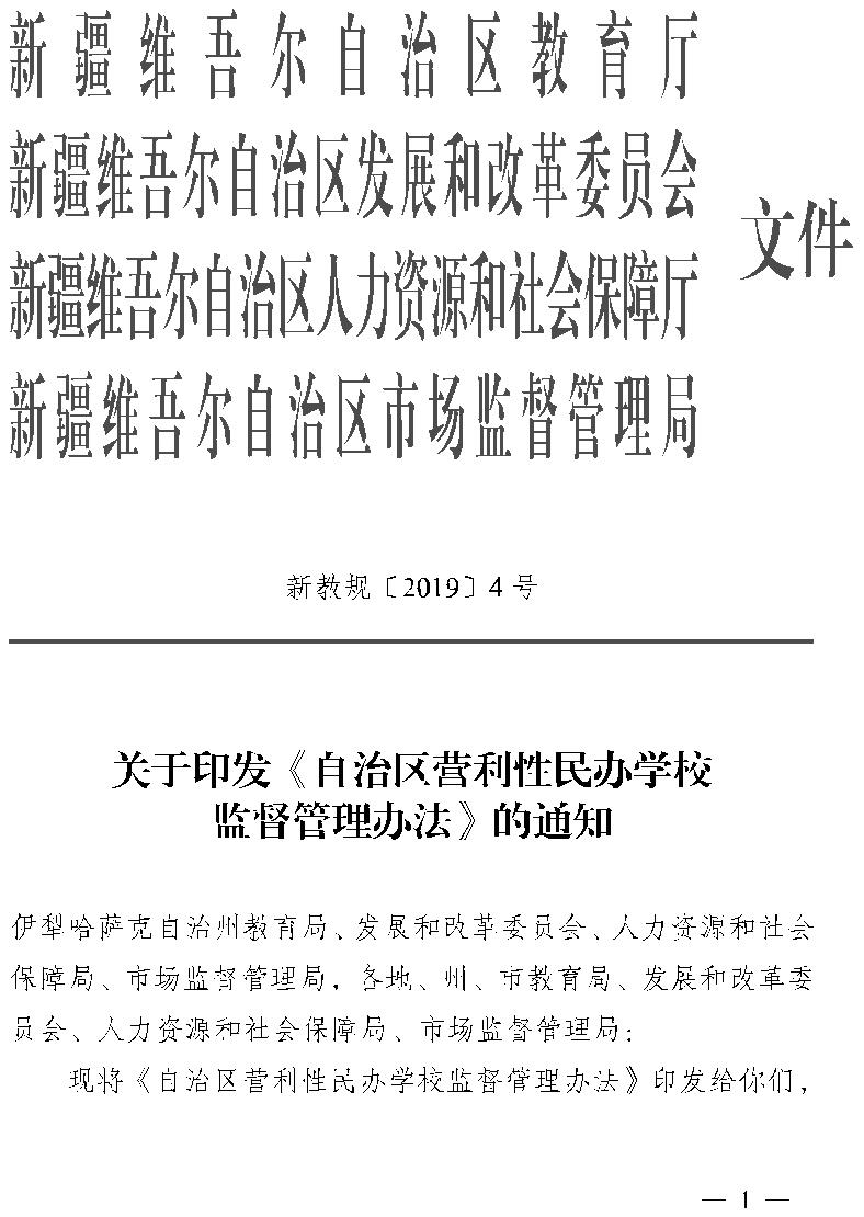 索引号: 11654202010313502B-2021-00330 发布机构: 发布日期: 2021-05-15 所属主题: 义务教育 索引号: 11654202010313502B-2021-00330 发布机构: 发布日期: 2021-05-15 所属主题: >义务教育 【民办学校信息】关于印发《自治区营利性民办学校 监督管理办法》的通知 发布时间:2021-05-15 00:00:00 【字体:小 大】