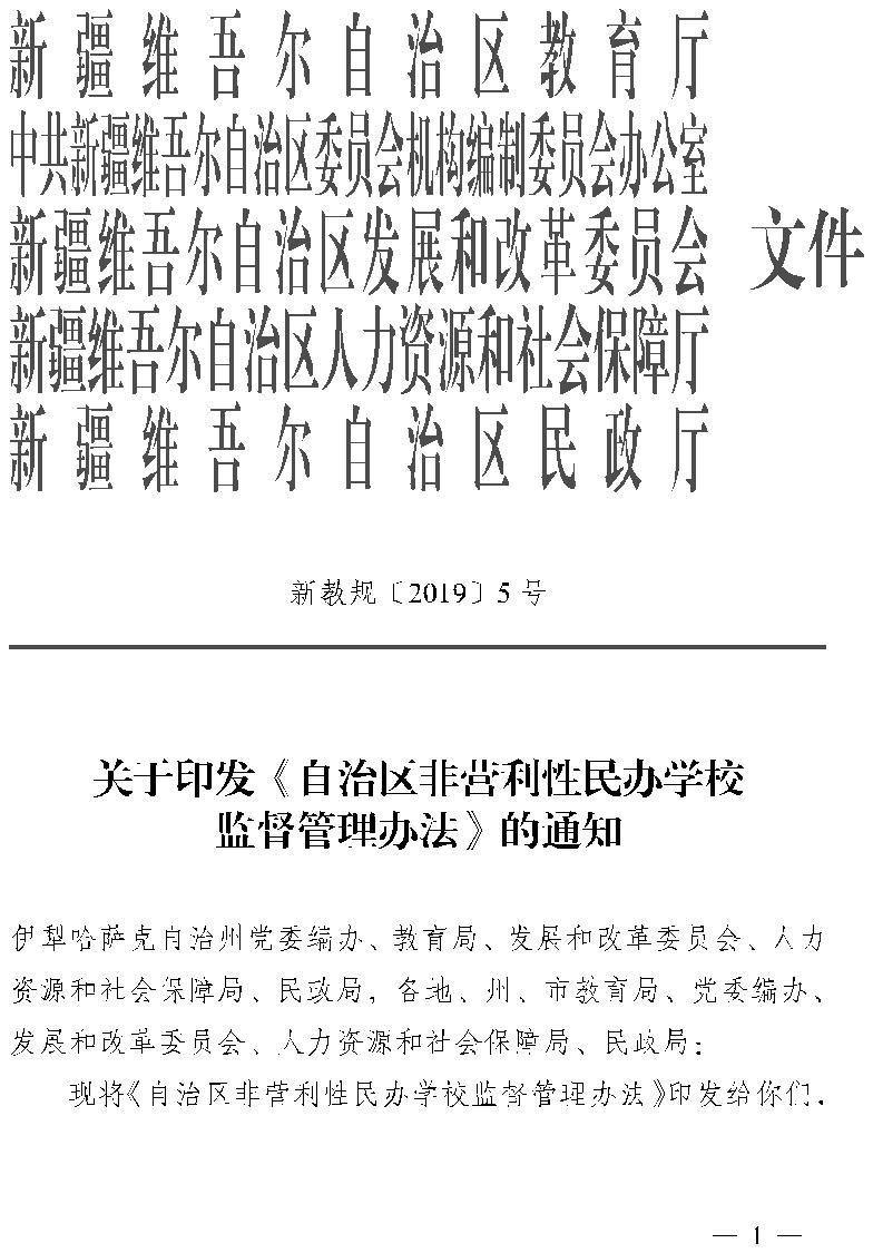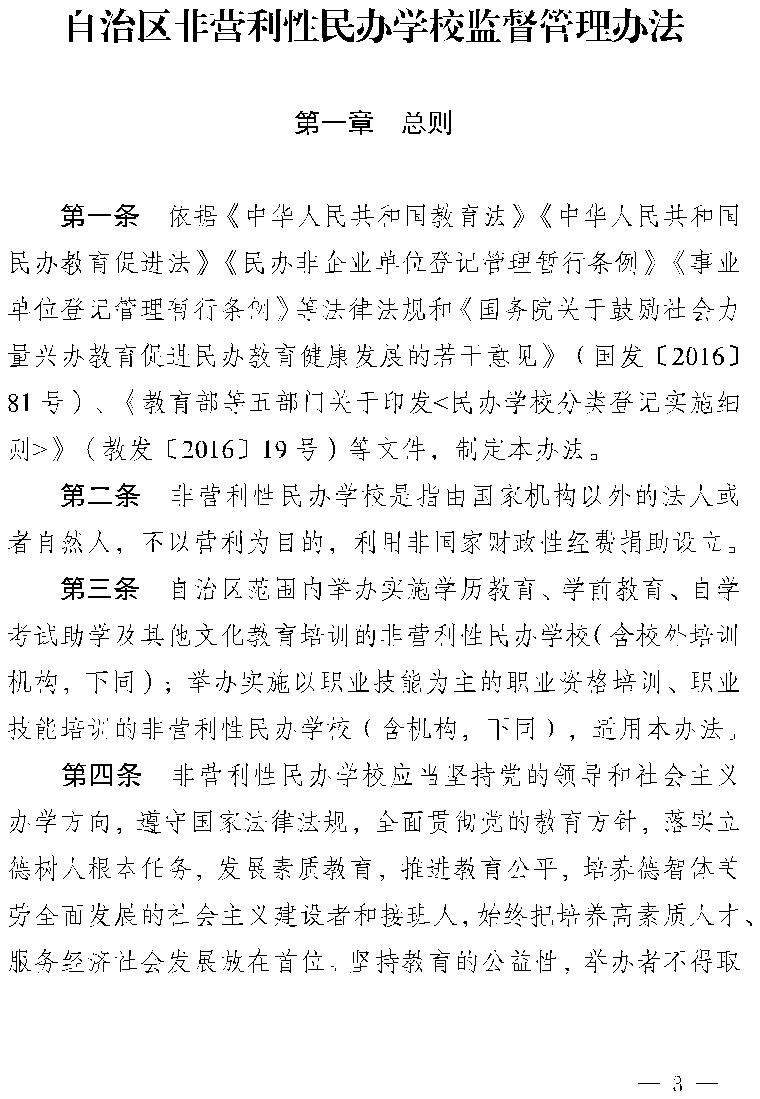 索引号: 11654202010313502B-2021-00331 发布机构: 发布日期: 2021-05-15 所属主题: 义务教育 索引号: 11654202010313502B-2021-00331 发布机构: 发布日期: 2021-05-15 所属主题: >义务教育 【民办学校信息】关于印发《自治区非营利性民办学校 监督管理办法》的通知 发布时间:2021-05-15 00:00:00 【字体:小 大】