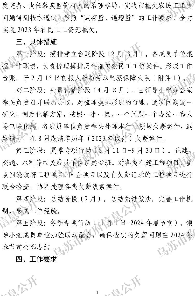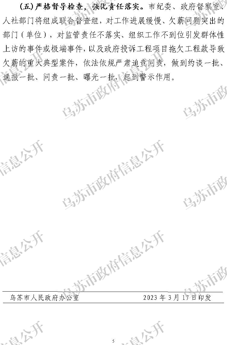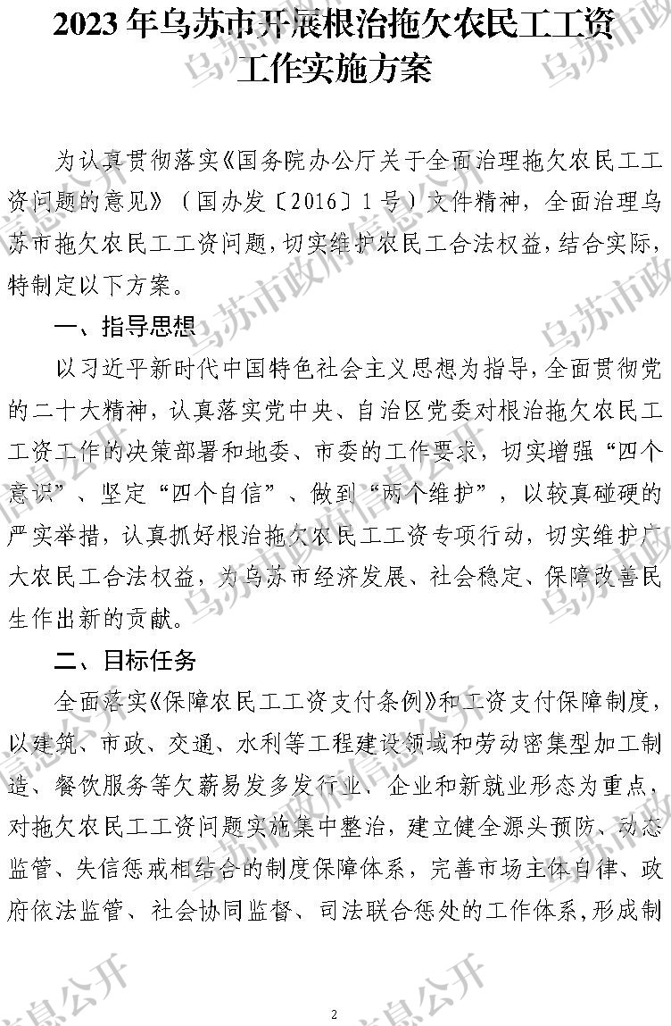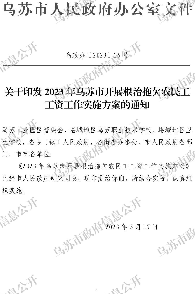 关于印发2023年乌苏市开展根治拖欠农民工工资工作实施方案的通知