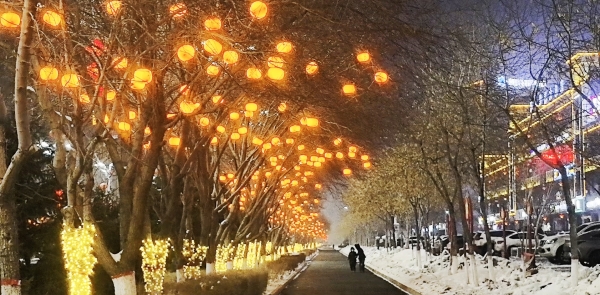 乌苏市民海磊说:“街道上布置了彩旗、红灯笼和彩灯,浓浓的年味扑面而来,让人感受到节日的喜庆氛围。”