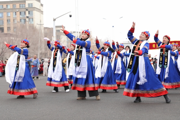 塔布勒合特蒙古族乡社火队队长胡星·桑吉拉说:“我们是以非遗沙力搏尔搏克和萨吾尔登为主,由机关干部和村民组成的社火团队向全市各族人民拜年。”