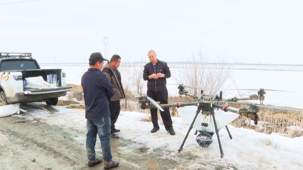 西大沟镇东开发区种粮大户董自利说:“现在无人机撒肥,两三个小时就完成了,无人机把尿素撒到雪面上,随着雪融化,肥料也能均匀地溶解渗透,小麦返青的时候,肥料会吸收得更好,产量会更高。”