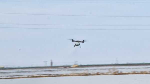 3月11日,乌苏市农业农村局农业技术巡回服务队走进西大沟镇东开发区,在冬麦种植户董自利200多亩的麦田里,现场查看冬小麦长势及分蘖情况。在农业技术人员的指导下,董自利现场操作无人机,播撒尿素融雪肥和杀菌剂。这种飞播方式相比传统人工效率大幅提升,以往需要10多个工人花2到3天才能完成,不仅费时费工,肥料播撒不均匀,还会影响小麦拔节生长。