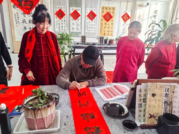2月3日,新市区街道文德路社区离退休党支部开展了“银龄挥毫颂新春、红联送福暖社区”写春联送祝福活动,为离退休老干部等写春联、送祝福,让困难群众、离退休干部、干部职工共同感受组织的温暖和越来越浓的年味儿!