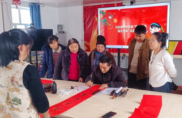 新春将至,年味渐浓。连日来,塔城地区乌苏市各乡镇(村队)、街道(社区)开展形式多样的迎新春活动,通过书写春联、“群众村晚”等形式将新春祝福送到各族群众家门口,营造了喜庆祥和的节日氛围。
