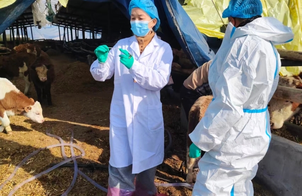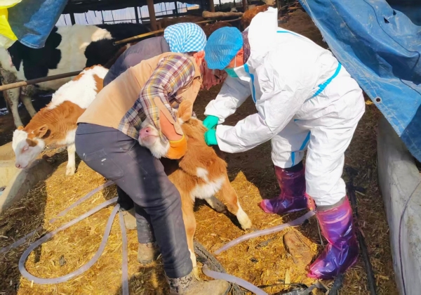 救治现场,技术人员身着专业防护装备,细致为患病低温牛犊开展体格检查、体温监测,规范实施人工辅助复苏、补液升温、营养补充等针对性救治措施,累计走访养殖户21余户,成功救治患病牛犊6余头,为畜牧生产筑牢技术防线。同时,技术人员还现场指导养殖户做好圈舍保温、初乳规范饲喂、通风防潮等关键工作,切实提升养殖户科学养殖与疫病防控能力。