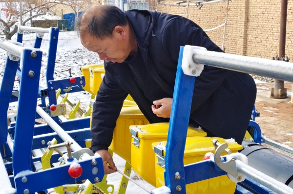 “播种机是春播的好帮手,提前把它检修好,播种的时候才能又快又好,保障今年的播种质量和进度,为丰收打下基础。”西大沟镇下店村村民李金生说。