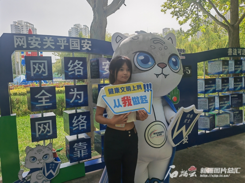 9月9日,2024年国家网络安全宣传周新疆宣传活动在巴州库尔勒市启动,在库尔勒市南湖公园里,网络安全主题展前的新疆网络安全IP形象“安豹”赢得市民青睐。石榴云/新疆日报记者 甘兴华摄